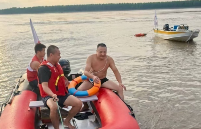 江汉风报道:7月27日18时12分,石首市红十字水上救护站值班人员汤娥梅在江堤防溺水巡逻中,通过望远镜发现江心有一名中年男子遇险——该男子在水中奋力挣扎并呼喊求救,湍急水流正将其带向附近进行卸货作业的工业码头区域,水下螺旋桨形成的涡流暗藏致命风险,现场情况危急。