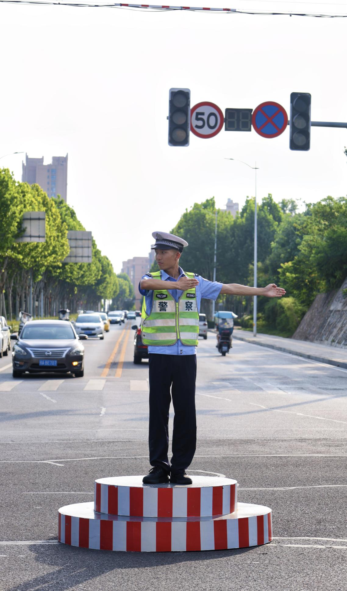 江汉风报道:七月的松滋,骄阳如烈火灼烧,地表温度飙升接近50度。松滋市新江口城区的主干道上,热浪翻涌,然而就在这令人窒息的酷暑熔炉之中,松滋市公安局交警大队新江口中队的民警,如磐石般坚守在灼热路面之上。