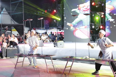 杂技表演《快乐厨房》,吸引众多市民和游客观看。