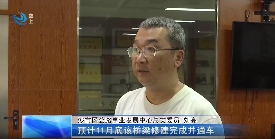 沙市区公路事业发展中心总支委员 刘亮:截至7月30日,我们已经完成了该桥的设计,财评及招投标工作,现在已经确定该项目的施工单位,于8月4日进场组织施工,施工顺利的情况下,预计11月底该桥梁修建完成并通车。