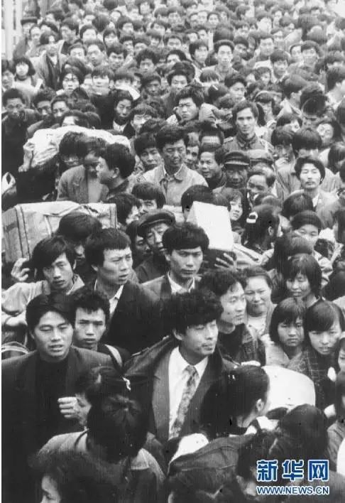1995年1月19日,广州火车站检票口,一位年轻女乘客被人流挤哭了。