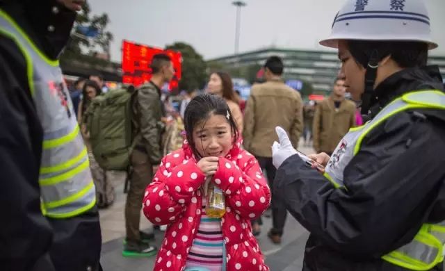 一位小女孩和爸爸走丢了,急得哭了起来,在民警的帮助下,她很快找到了爸爸。南方网 张由琼 摄