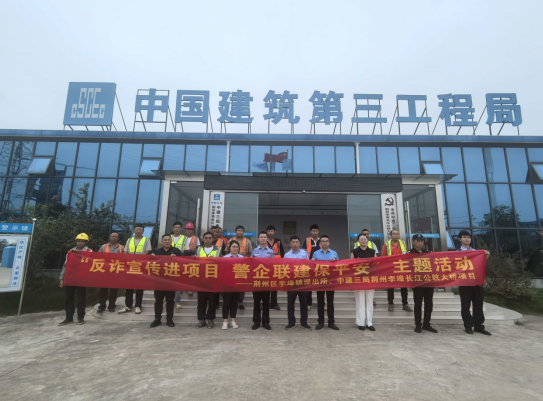 江汉风报道:近日,荆州市荆州区李埠镇人民政府、李埠镇派出所与中建三局荆州李埠长江大桥项目联合组织开展“反诈宣传进项目 警企联建保平安”主题宣传活动。