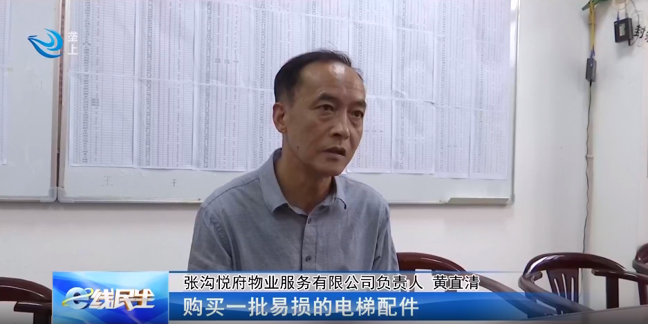 张沟悦府物业服务有限公司负责人 黄直清:我们还迁房的电梯在质量上面比商品房的电梯还是差一点,也许因为开发商的投入少了,买的便宜货。
