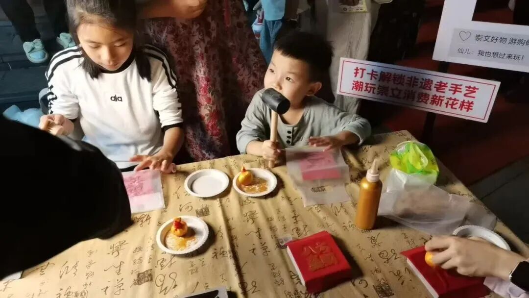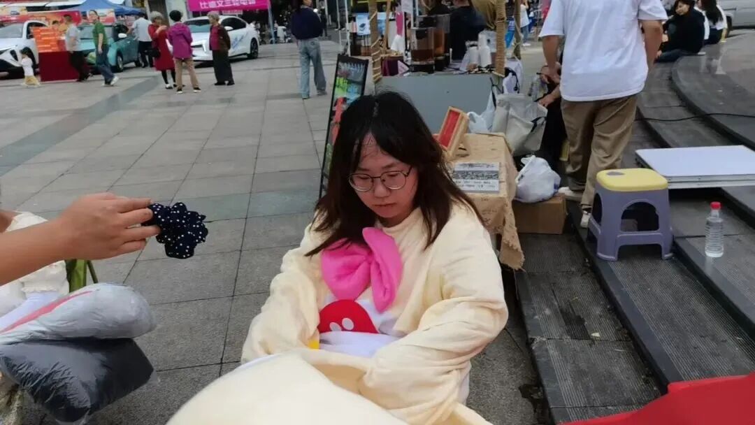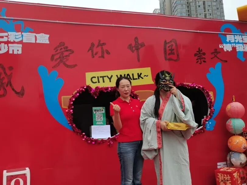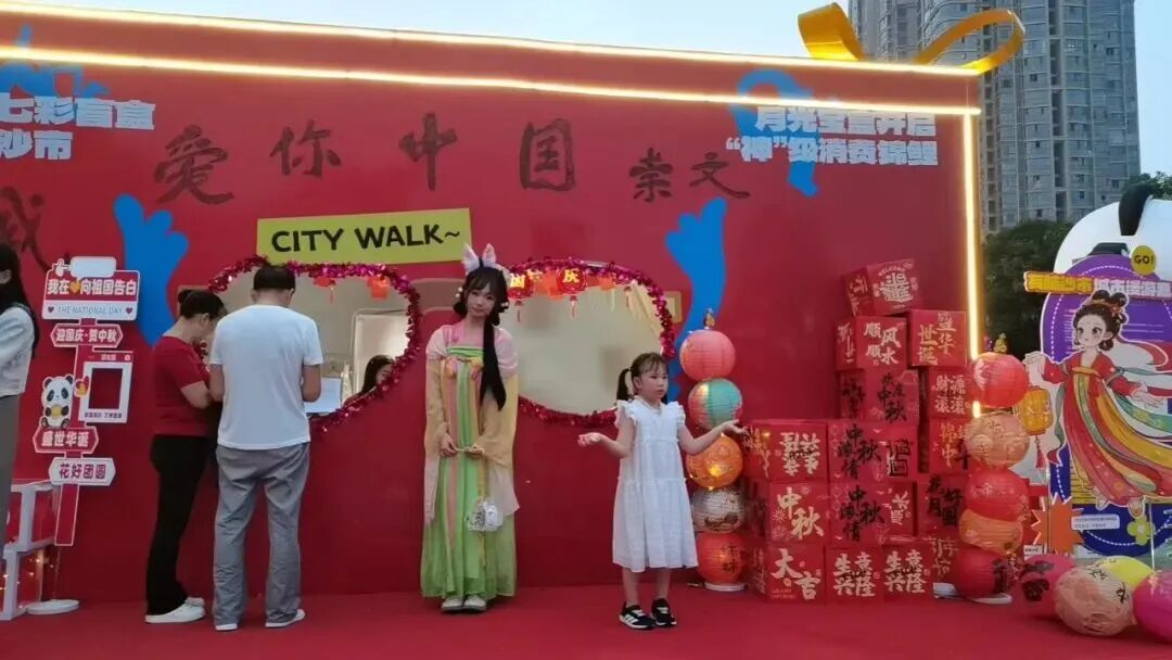 除了精彩演出,“定制化”快乐更让节日氛围拉满。盲盒抽奖惊喜不断,沙市区所有特色商家“放价”宠粉,力度空前;非遗手工艺展销长廊,社区书记亲自为件件独一无二的伴手礼吆喝揽客,游客赞叹不已,纷纷为文化买单;动感滑板音乐响起,少年踩着板儿穿梭,青春的朝气扑面而来;少女们cosplay嫦娥仙子的美丽,战国袍的浪漫,传统服饰和非遗手工吸引游客忍不住拍照打卡,仿佛穿越千年;就连文化站站长都“豁出去”,套上厚重的玩偶服,笨拙又可爱地和孩子们互动,摘下头套时,散乱的发丝和额头的汗珠里满是笑意。