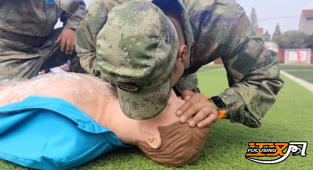 开营仪式在庄严的氛围中启动。学生们身着整齐校服,以饱满的精神状态开启当日旅程。在“急救与包扎”环节,教官手持模拟绷带,细致演示伤口包扎的每一个步骤,“先固定伤口边缘,再螺旋式缠绕,松紧度以能伸入一指为宜!”学生们两两一组,小心翼翼地为同伴“包扎伤口”,从最初的手忙脚乱到后来的熟练配合,课堂上满是专注的眼神。实用急救技能训练准时开启。从海姆立克急救法的“剪刀、石头、布”手势教学,到CPR心肺复苏的按压位置、力度演示,教官手把手指导,学生们趴在模拟人模型上,认真练习每一个动作,“按压深度要5-6厘米,频率每分钟100-120次!”牢记教官的叮嘱,稚嫩的脸庞上满是严肃与认真。