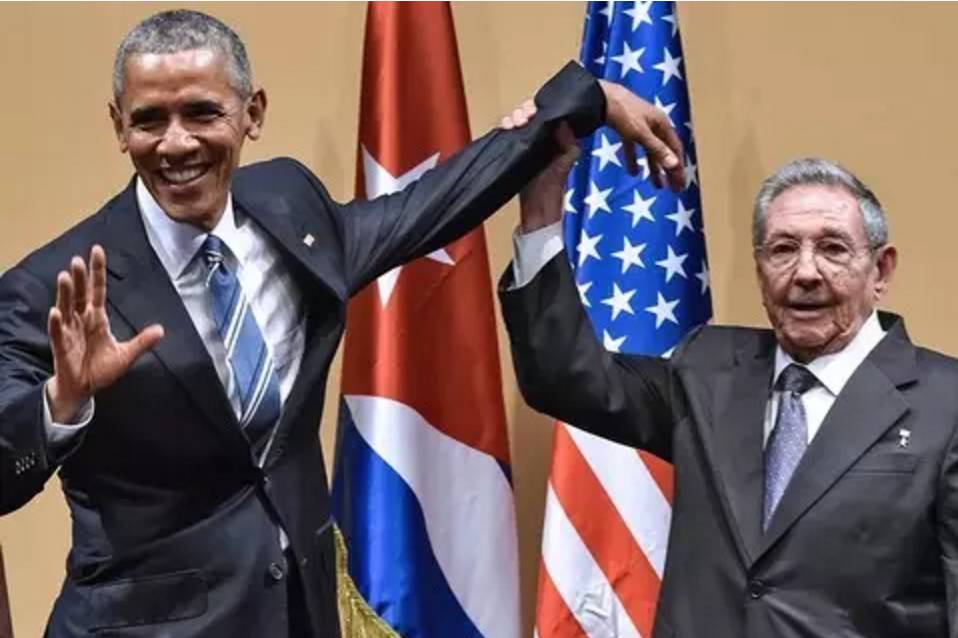 2016年3月21日,在哈瓦那的联合新闻发布会后,奥巴马试图用手搭上劳尔•卡斯特罗的肩膀,被后者拒绝了。不过,作为1928年以来首位访问古巴的美国在任总统,这次破冰之旅足以成为奥巴马最闪亮的外交遗产之一。然而,特朗普不只一次威胁要终止“美古协定”。