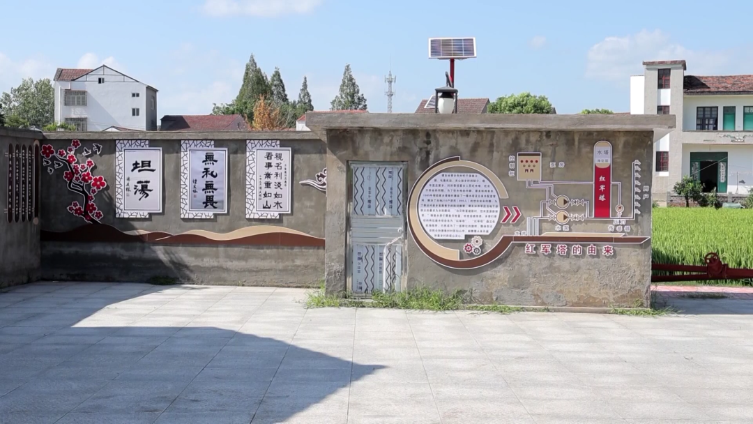 这块碑文是被称为铁血战士的谭友林少将题的。1985年,他帮助家乡谭巷村建设了一座水塔及自来水配套管网,解决了当地210户居民的饮水安全问题。这座水塔至今还保留着,乡亲们亲切地将这座水塔命名为“红军塔”。