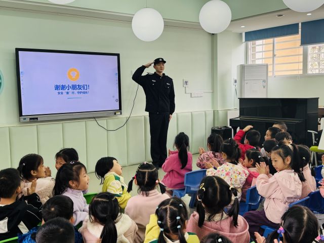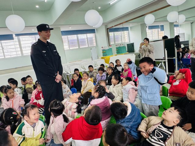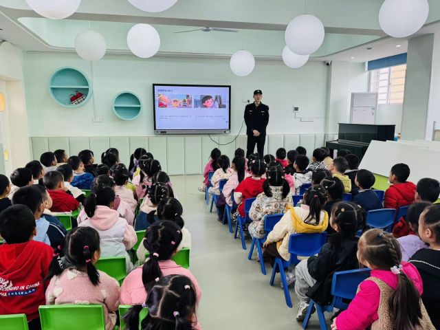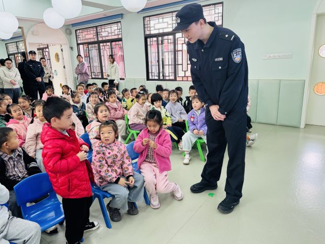 讲解过程中社区民辅警,通过情景模拟、角色扮演等,教会小朋友们识别危险信号,懂得在遇到危险时如何向老师、警察求助,如何在人群中不离开老师和家长的视线。