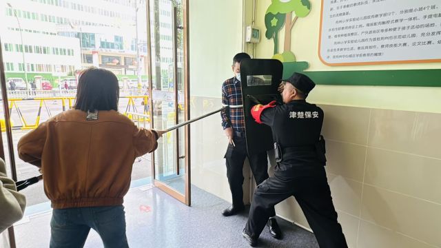 理论知识讲授结束后,派出所民辅警联合学校保安力量及部分教师,组织开展了反恐演练。演练模拟了一名“暴徒”企图强行闯入校园的场景。演练结束后,民警对演练过程进行了复盘点评,肯定了校方安保人员的警惕性和应急反应,同时也针对器械使用、协同配合等细节提出了优化建议。民警还向保安及老师们现场演示了钢叉、盾牌、警棍等常用防护器械的正确使用方法及注意事项,进一步提升了校园内部安保力量的实战能力。