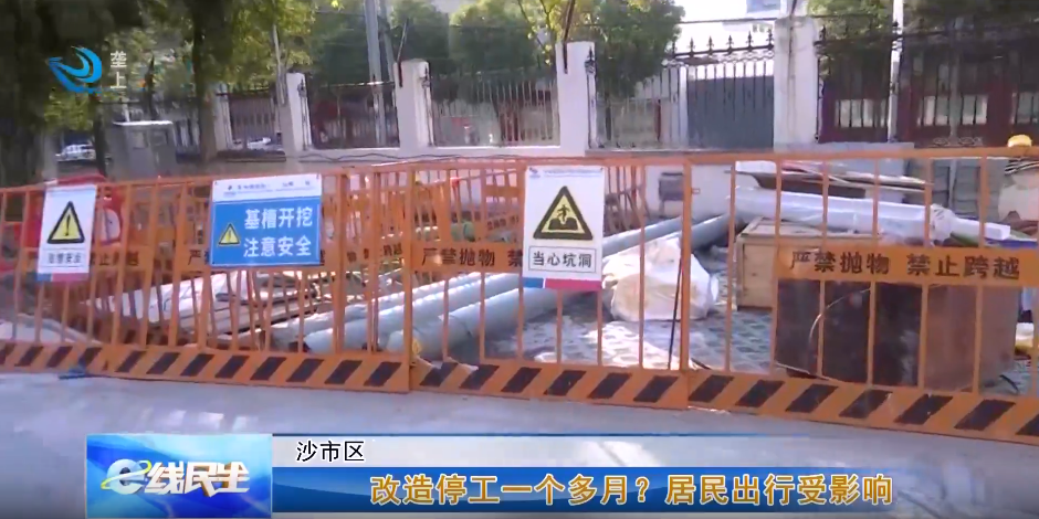 顺驰太阳城小区居民:六月份就开工,公示是三个月时间修好,现在都快五个月了还没弄完。工地现在停工没人,说安排人,但是一直没人动工,就导致这个地方一直围着,我们小区的路本来就窄,路上又堆了一堆沙,路面也破坏了也还没有恢复。