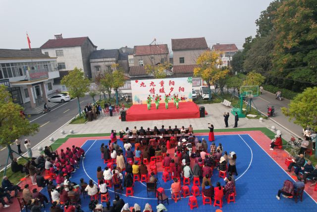 上午10时,文艺表演开始。花园村舞蹈队、狼牙基地鼓舞队和花园村楚天艺术幼儿园带来了精彩节目:开场鼓舞激情昂扬,营造了浓厚的节日氛围,楚天艺术幼儿园的小朋友们手语操和舞蹈《马儿嘟嘟骑》为爷爷奶奶们送上最真挚的节日祝福,村舞蹈队带来的舞蹈《映山红》《爷爷奶奶和我们》《万丈高楼平地起》舞姿优美、充满活力,村民自编自演的三句半《村花说重阳》更是贴近生活,祝福满满,最后的大合唱《我们走在大路上》唱出了老年生活的美好,引发在场老人的共鸣,现场掌声不断。