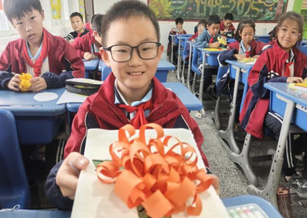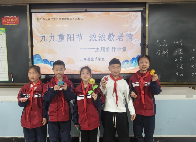 江汉风报道:岁岁重阳,今又重阳。为弘扬中华民族“尊老、敬老、爱老、助老”的传统美德,10月29日,荆州纪南文旅区枣林小学将重阳节文化与特色“雅行学堂”深度融合,精心开展了“九九重阳节 浓浓敬老情”主题雅行活动,让学生在笔墨、手工与创作中,感受重阳意蕴,厚植家国情怀。