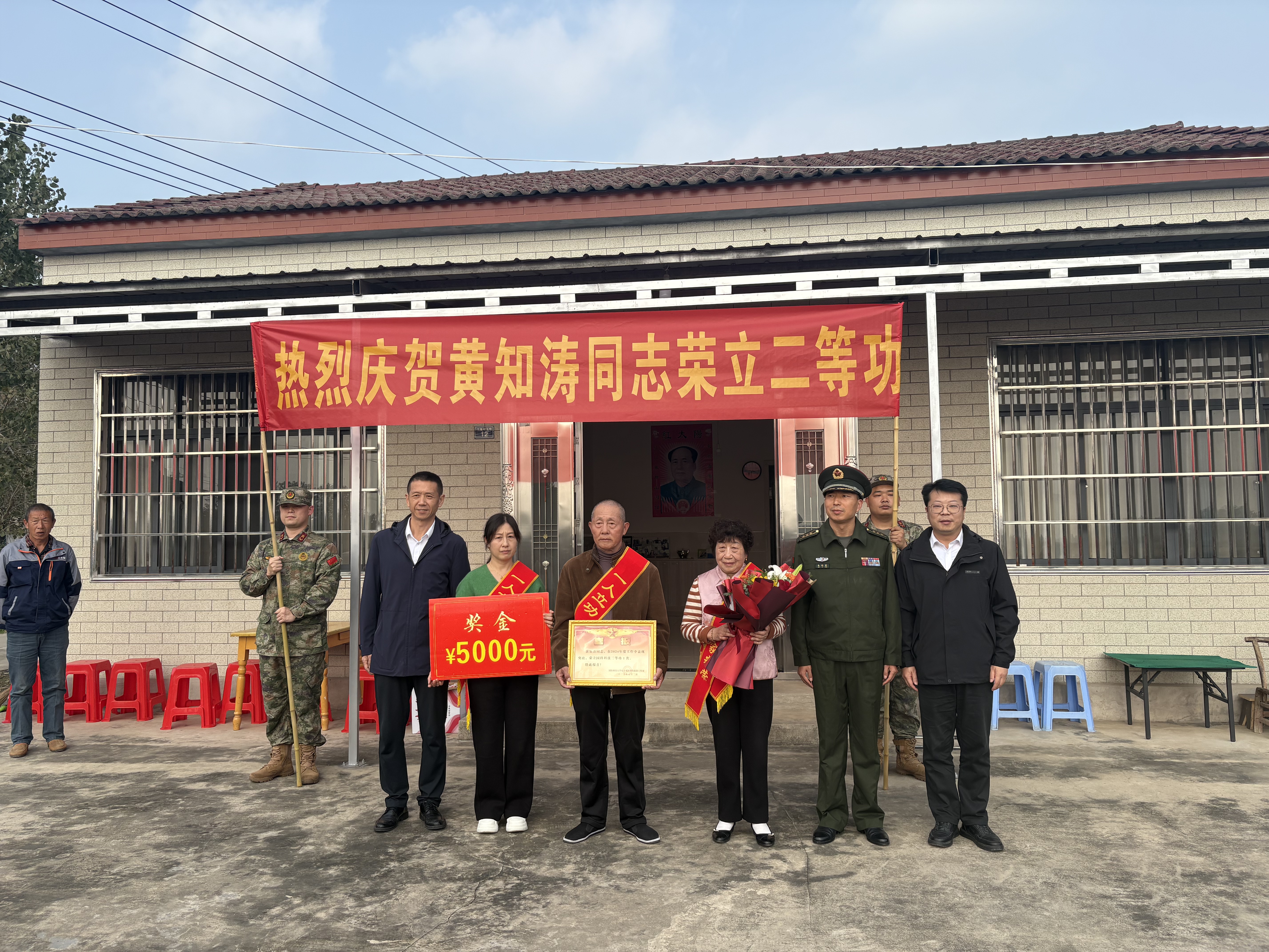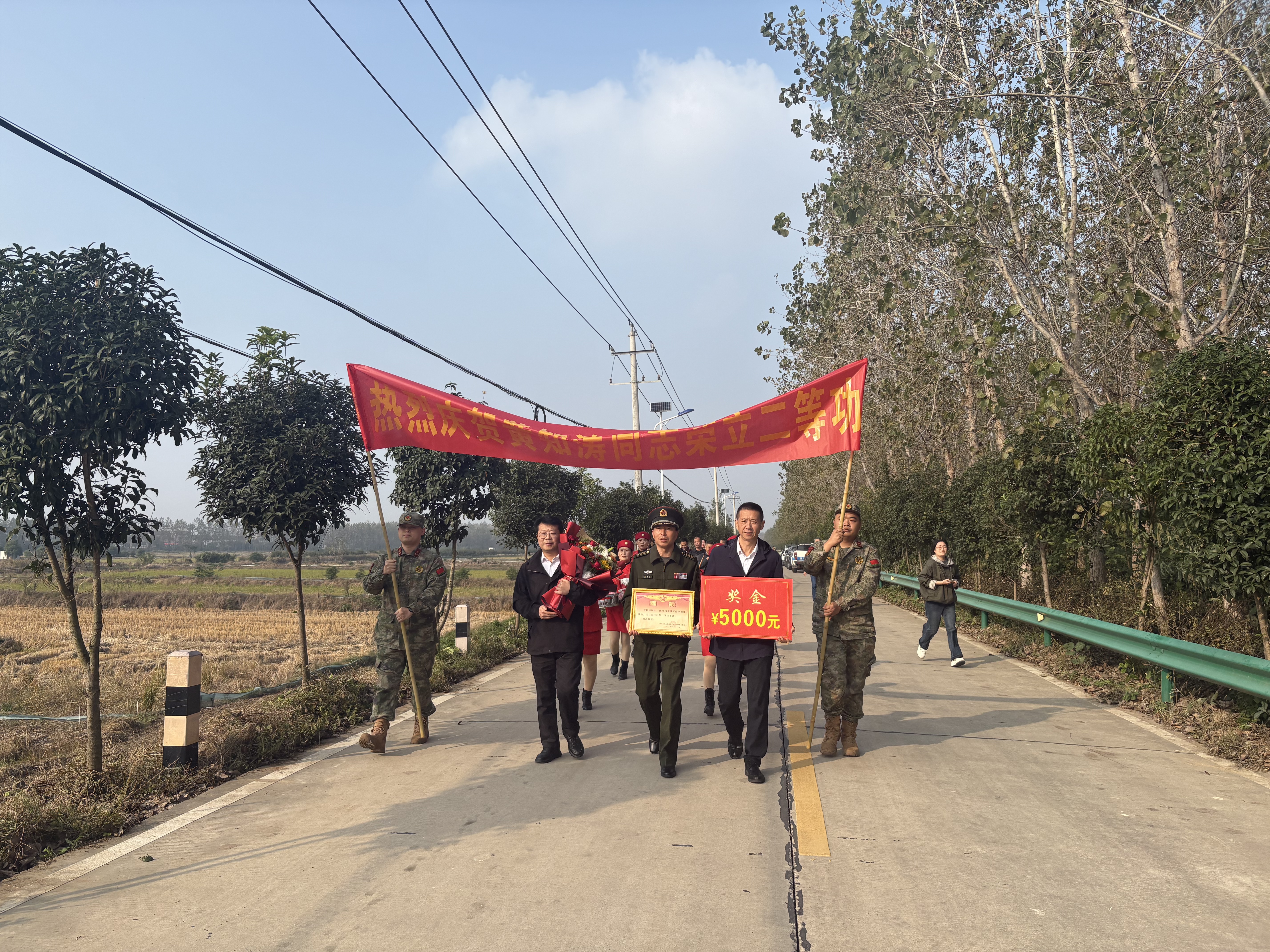 江汉风报道:“咚咚锵,咚咚锵……”10月30日下午,伴随着喜庆的锣鼓声,沙市区人武部、沙市区退役军人事务局、沙市区观音垱镇人民政府相关负责人组成送喜报队伍,高举“热烈庆贺黄知涛同志荣立二等功”横幅,手捧喜报、慰问金和鲜花,前往现役军人黄知涛家中,将这份承载着军人荣誉与国家关怀的喜讯送到军属手中。