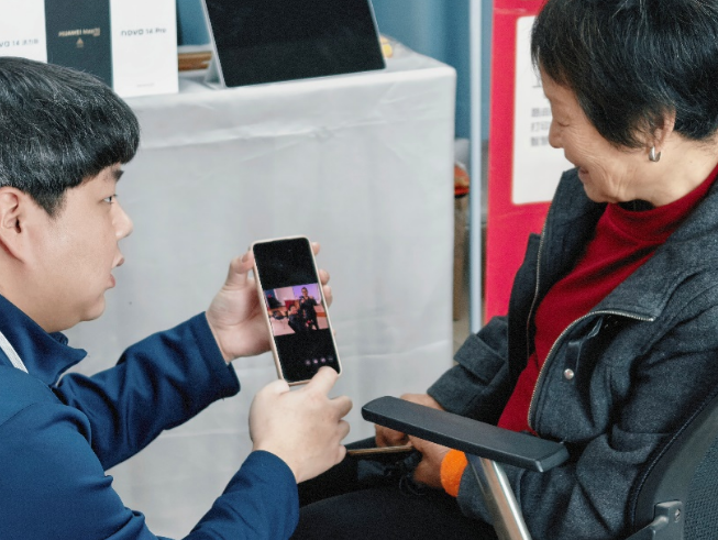 培训聚焦老人高频需求。在安全防诈方面,工作人员讲解了手机关怀模式及恶意应用防范知识,助老人减少恶意广告和电信诈骗困扰,还指导老人快速放大图标字体,方便使用。此外,工作人员现场示范摄影拍照、手机截屏等日常操作,让老人更好体验智能手机的便利。