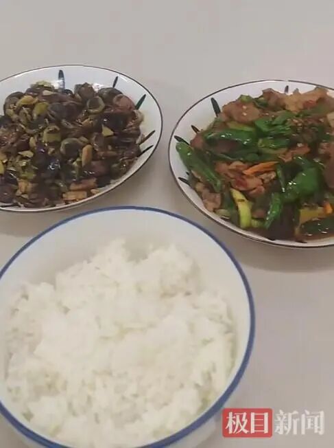 不一会儿,邓迎松为货车司机现炒了一盘青椒肉丝、一盘豌豆米,然后盛了一大碗米饭。“给你做了一点饭,希望你不要嫌弃。”她笑着说。