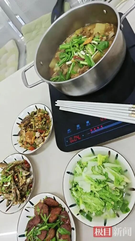 汪德珍说,厨房还特意做了松滋地方风味的排骨火锅,还炒了腊肠、麻辣鱼和青菜,“专门让外地客人感受我们地方的风味美食。”