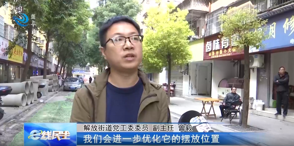 解放街道党工委委员、副主任 曾毅:第一是要方便居民出行,我们将在这些开挖的路面上增设一些木板、砖石,铺设一些便道,来方便居民出行;第二,我们堆放的一些物料像沉砂管之类的,可能影响这些门店的生意,我们会进一步优化摆放位置,将它放置于其他地方,不影响居民做生意、出行。