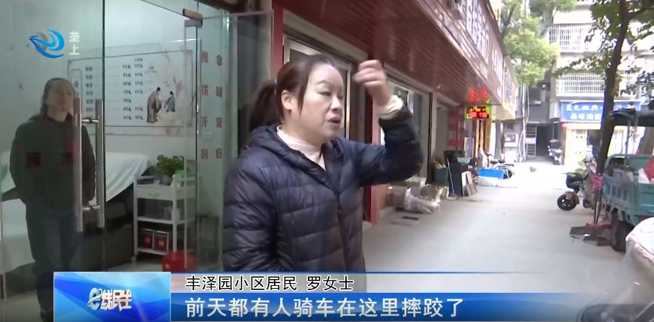 丰泽园小区居民 罗女士:前天都有人骑车在这里摔跤了。