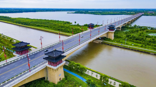 美景亮点:大桥横跨碧波,秋日天朗气清时,桥面与湖水、蓝天构成绝美三色画卷,微风拂过更显灵动。