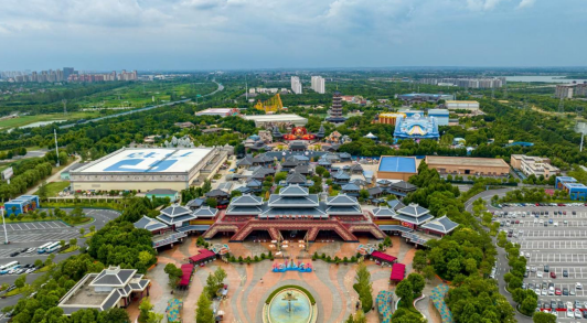 美景亮点:赛道紧邻方特园区,楚韵风格的建筑群落与游乐设施轮廓清晰,传统文化与现代娱乐感碰撞出独特画面。