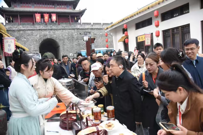 活动当天,三义街历史文化街区人头攒动,志愿者们化身的张飞、刘备、关羽等三国人物一亮相便成为焦点。秉持该品牌“沉浸式传播”的服务特色,志愿者们将角色演绎与互动体验深度融合:“张飞叫卖猪肉、刘备沿街吆喝、关羽设摊投壶……,生动的演绎让现场笑声与喝彩声不断。来自全国各地影视界、投资机构的行业精英及各级媒体嘉宾纷纷驻足拍照打卡,过路的市民也积极参与互动,在趣味体验中感受三国文化的魅力。