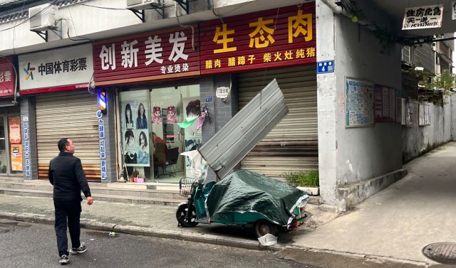 房主赶回家中查看,惊见雨搭钢板仅靠一根细铁丝勉强承重,随时可能断裂。危急时刻,3名社区工作人员挺身而出,探出身子用双手牢牢托住悬空的钢板,这一托就是半小时,手臂酸痛、虎口发麻却始终未松劲,稳稳守住了楼下的安全。