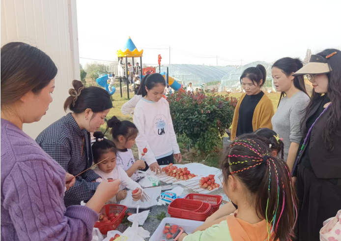 手作“冰糖葫芦”比采摘草莓更有趣。孩子们还在家长的带领下洗草莓、串草莓、品“草莓串”,荡起木秋千,玩起滑滑梯,尽享难得的亲子时光。一颗颗鲜红的草莓,串起了市民的周末欢乐时光,也撑起了种植户的致富梦想。这抹秋冬里的“甜蜜经济”,不仅让乡村田园更具吸引力,更成为当地乡村振兴路上的一道亮丽风景线。