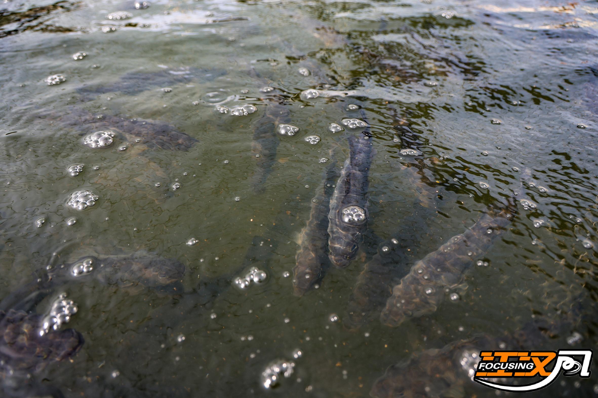 江汉风报道:11月28日,在江陵县秦市乡东陈岭村的鲈鱼养殖基地内,饲养员正仔细查看鲈鱼的生长情况。