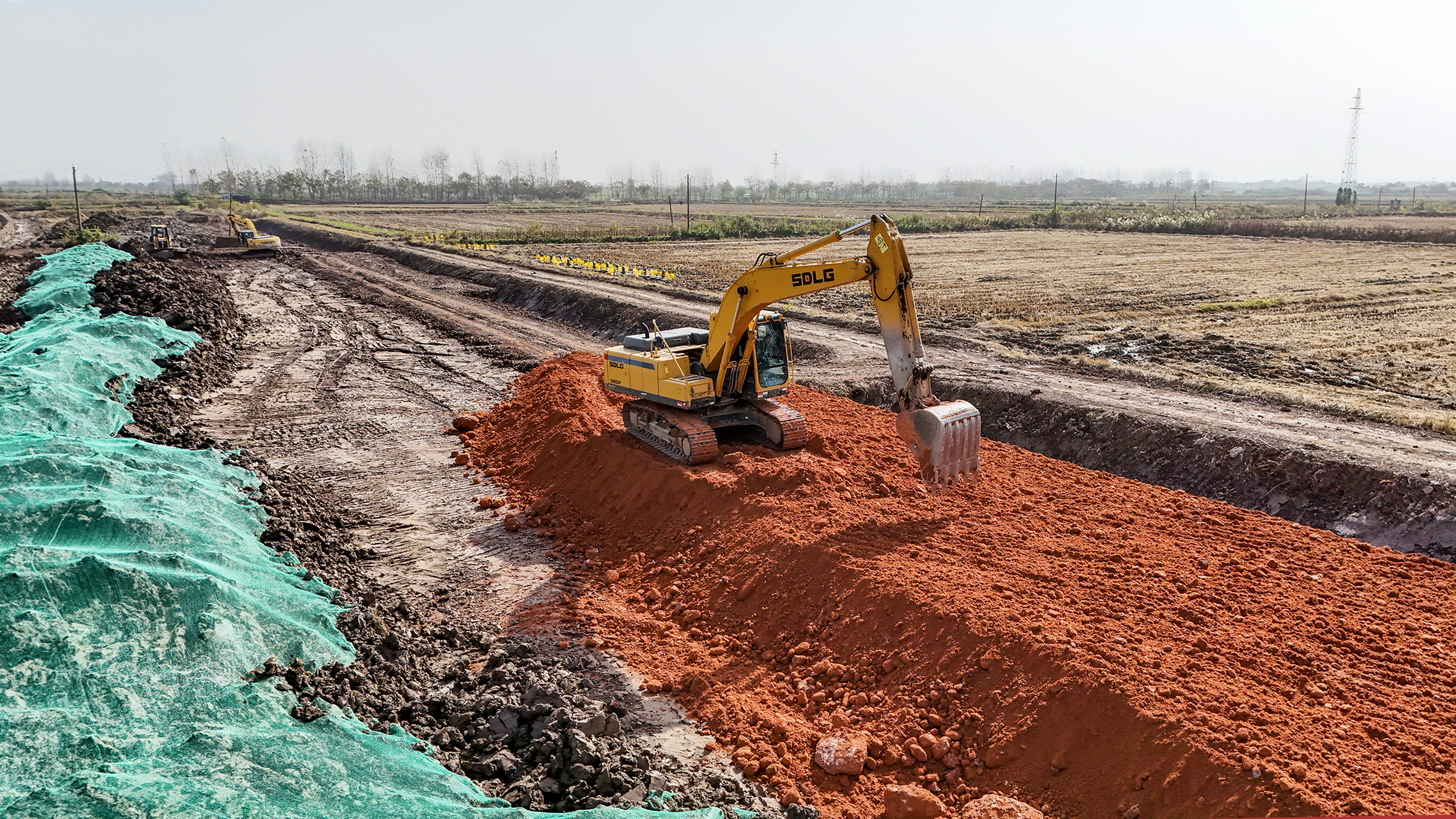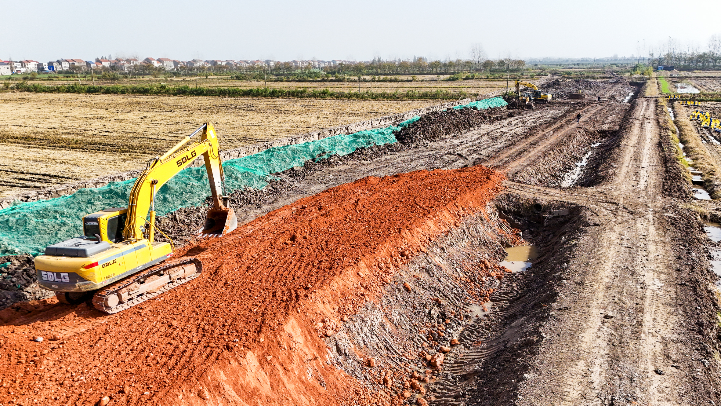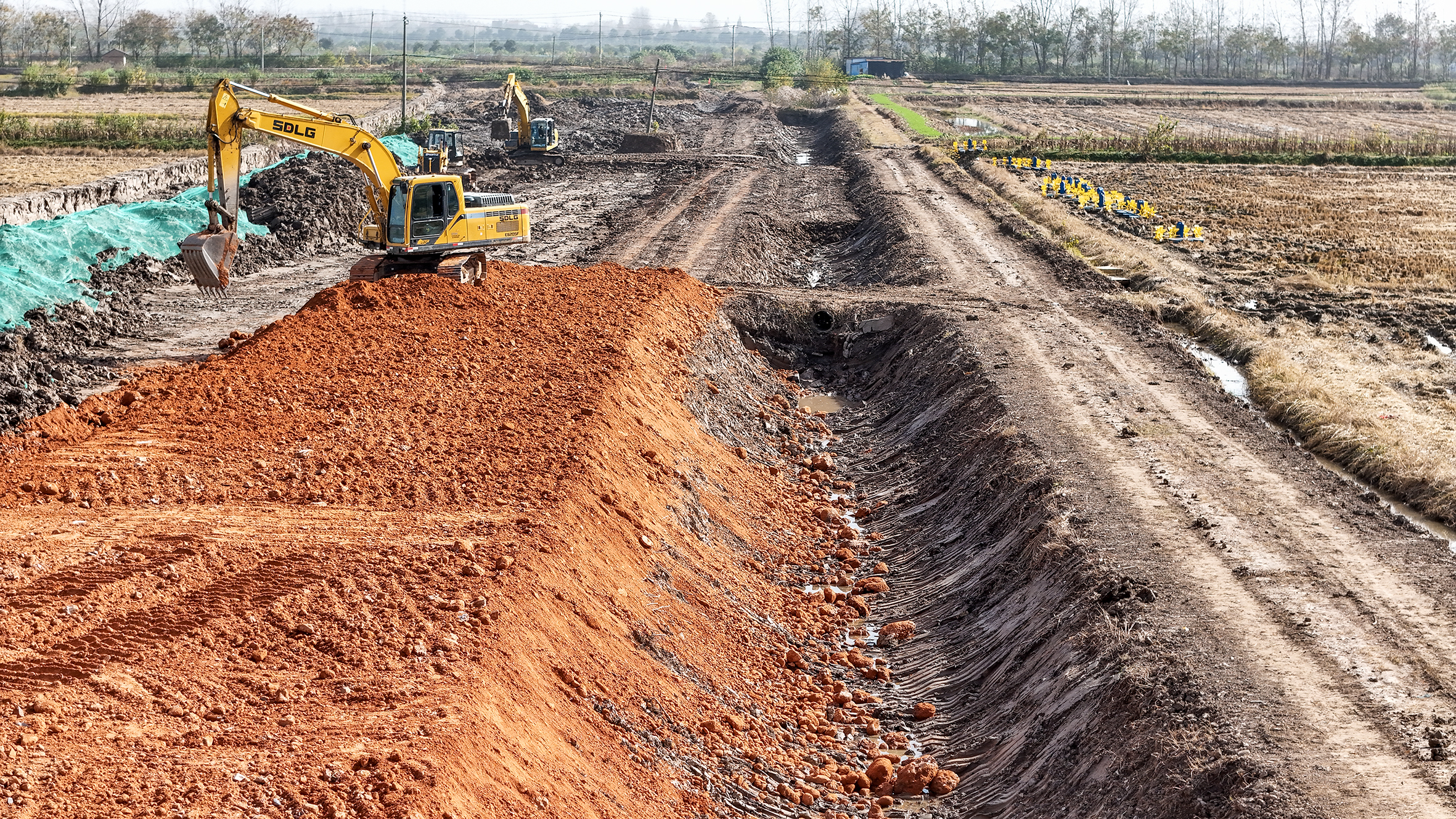 为抢抓冬季枯水期施工窗口,施工方计划外运高强度石料与山土填筑路基,并加快推进沿线涵闸、桥梁等结构工程施工,确保不影响明年春季整体施工进度。