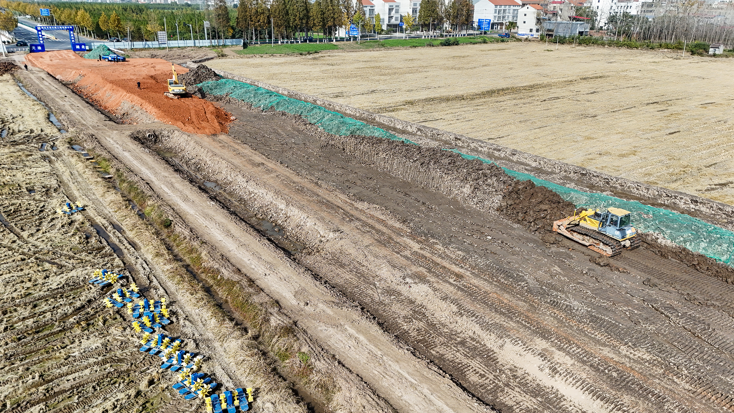 据介绍,该路段涉及江陵县秦市乡段全长约1.8公里,设计为双向六车道,路面宽约24米,包括两侧分界沟在内的总控制宽度约为三四十米。项目于今年10月下旬正式开工,目前已完成总工程量的10%左右,预计将于2026年底建成通车。
