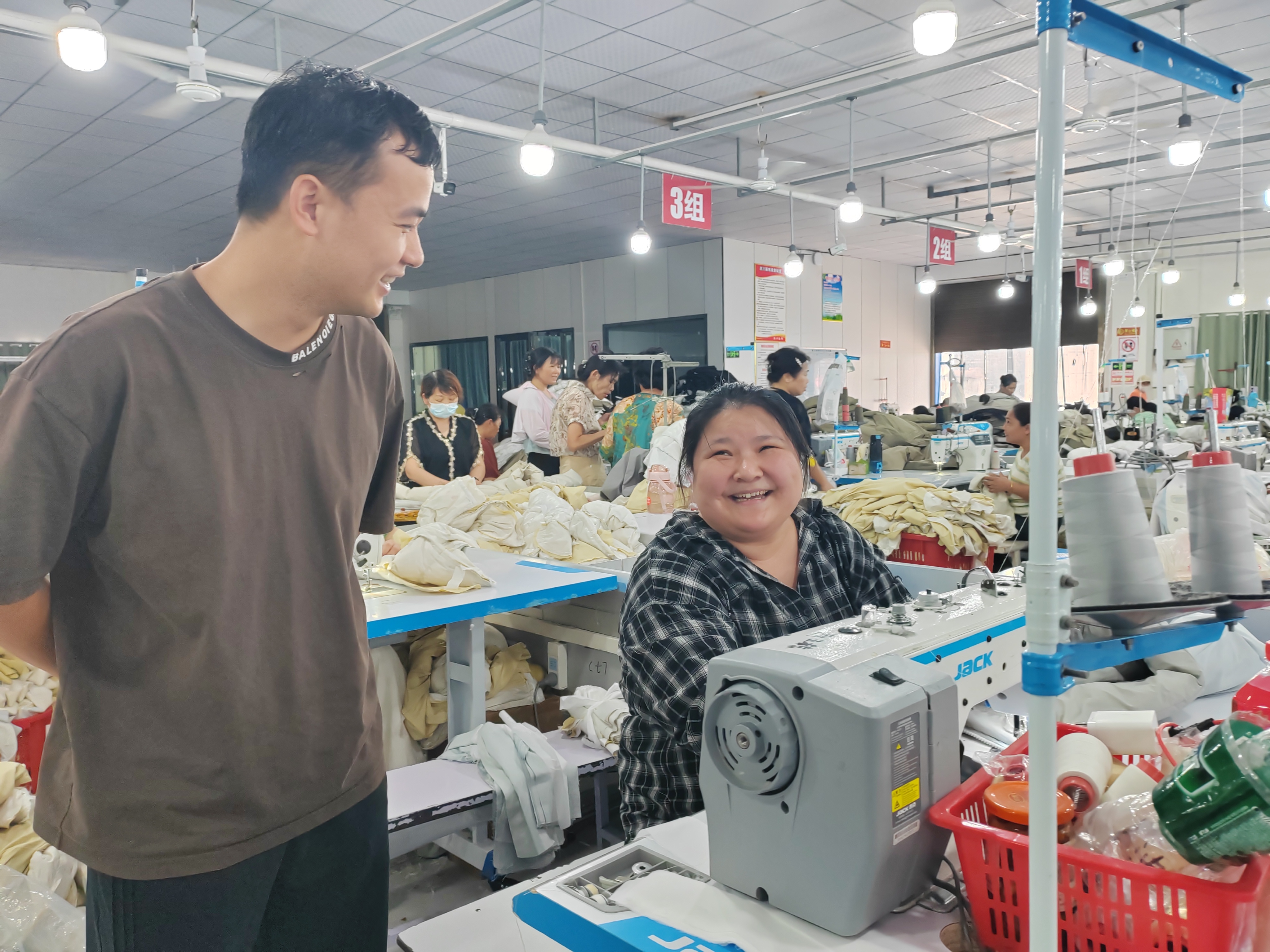 目前,联兴服饰已建成5条生产线,集服装加工、制作、销售于一体,带动近200名群众实现家门口就业。这里实行计件工资制,成熟工人月均收入5000元以上,最高甚至可破万。不少双职工家庭实现年增收近10万元,生活水平显著提升。