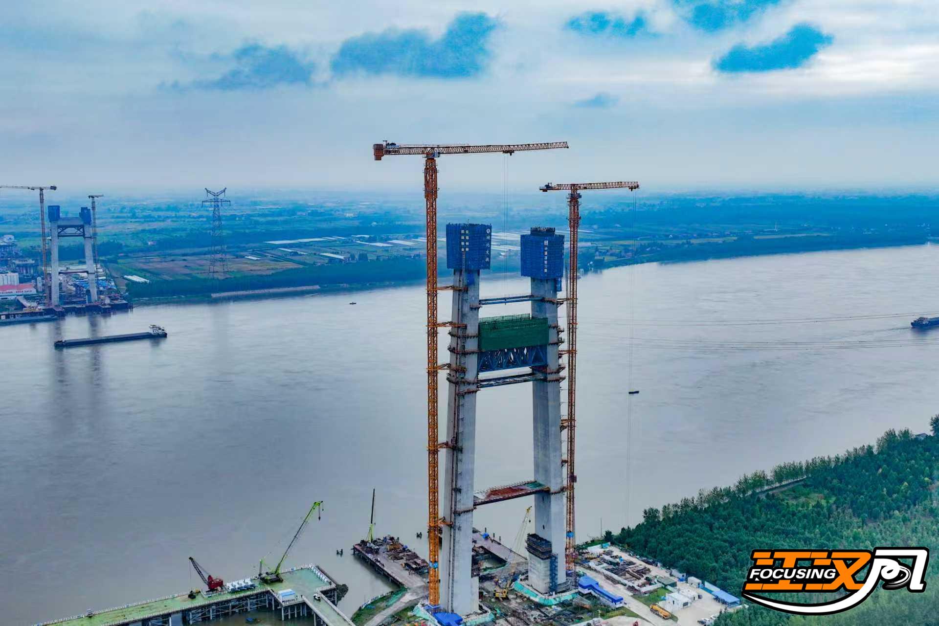 顺江而上,李埠长江公铁大桥建设同样热火朝天。目前,北岸主塔正进行第33节塔柱钢筋绑扎,锚体、散索鞍支墩正进行上下游第二层、第三层施工,奋力冲刺明年春节前封顶。