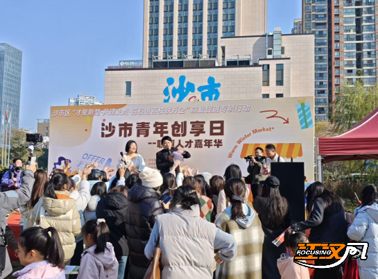 江汉风报道:12月6日,由沙市区人社局主办的“沙市青年创享日 职趣人才嘉年华”主题招聘会在温德姆草坪广场火热启幕。这场打破传统招聘刻板形式的活动,以“岗位对接+文创传播+政策服务”三位一体的沉浸式服务场景,搭配“抖音直播+线下现场”双线联动模式,吸引近万人参与。