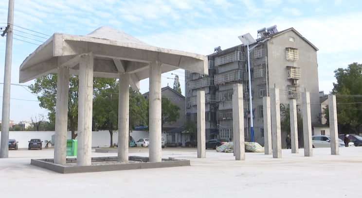 “共享菜园”旁边,小广场和议事亭正在紧锣密鼓地修建当中。