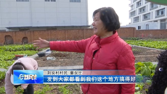 村民 李女士:这是村里给我们分的共享菜地,一块一块搞好让我们种,原来这里是荒地,现在又卫生又环保,我们晚上都不想睡觉,就想来看菜地,和抚育孩子一样,好有趣,不到一个月我们的菜就有收获了。