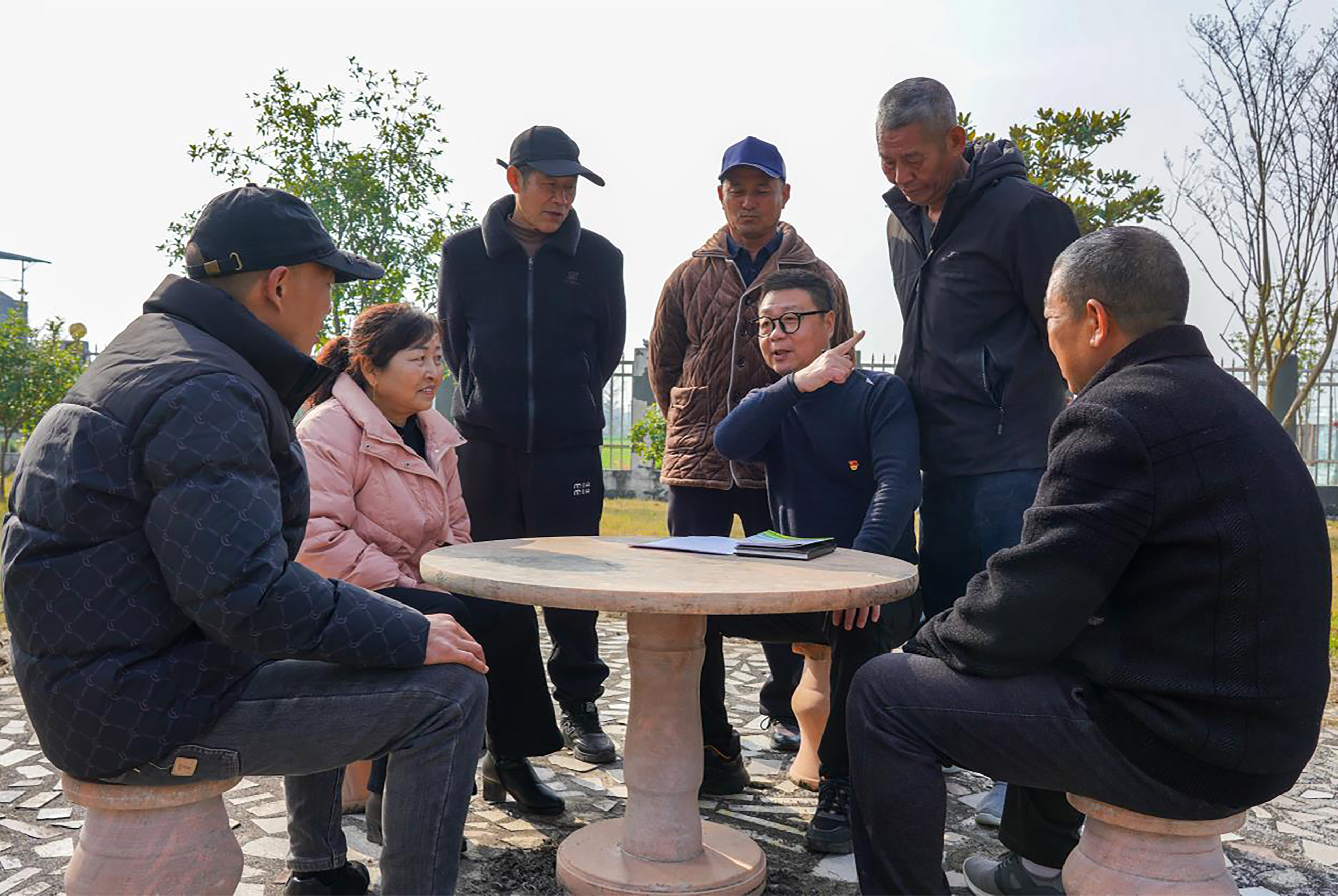 江汉风报道:12月18日,在荆州市公安县南平镇朱家湖村,驻村第一书记董浩在村民庭院宣讲党的二十届四中全会精神,并与村干部和村民积极互动,谋划产业发展。
