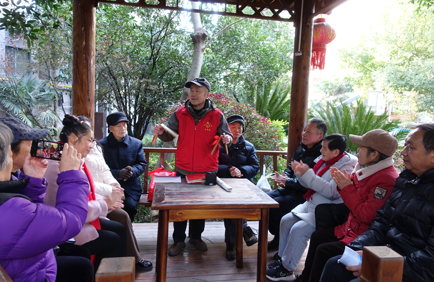 社区老党员龙伏生更是创新宣讲形式,手持快板,节奏明快,自编的唱词朗朗上口。他将四中全会精神、廉洁奉公准则、初心使命要义融入其中,“四中全会指航向,党建引领聚力量……”句句铿锵有力,这种喜闻乐见的形式引得在场群众连连喝彩,党音与廉韵在欢快的节奏中深入人心。