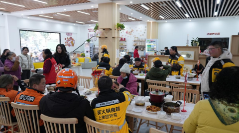 除了美味佳肴,精彩纷呈的节目更是将活动氛围推向一个又一个高潮。志愿者与外卖骑手们主动登台,带来了各自精心准备的节目,其中志愿者带来的歌曲《我们走在大路上》极具感染力,带动现场大家纷纷走向舞台、一同合唱;社区青年志愿者献上的歌曲《至少还有你》,则将活动氛围推向顶点。现场气氛热烈高涨,不少外卖小哥和志愿者即兴加入表演,用歌声与热情传递对彼此这一年来无私奉献的感恩之情,歌声、笑声、掌声交织成温暖的乐章。
