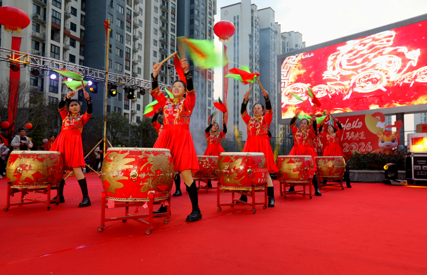 活动一开场就活力拉满!民俗表演《打夯歌》《舞狮》搭配鼓乐表演《欢乐中国年》轮番登场,直接拉开暖场热潮。欢快激昂的鼓点敲得人心潮澎湃,灵动鲜活的雄狮蹦跳腾挪吸睛十足,韵味醇厚的夯歌一开口便自带烟火气,将传统民俗的独特魅力展现得淋漓尽致,瞬间点燃全场氛围,让市民们欢声笑语、自在畅谈,沉浸式感受浓浓的新年氛围!