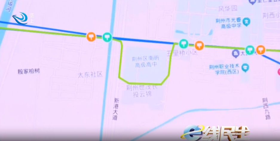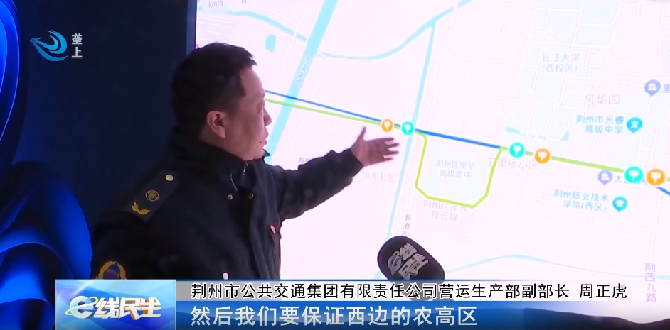 荆州市公共交通集团有限责任公司 营运生产部副部长 周正虎:前段时间这个区域在修路,我们要保证西边的农高区,还有太湖这边的乘客快速地进入到城区。我们只有进行一个绕行,就是从新港大道,然后走南昕高中的南门,还有世贸云锦这个位置,通过这条路然后再回到荆秘路沿线。