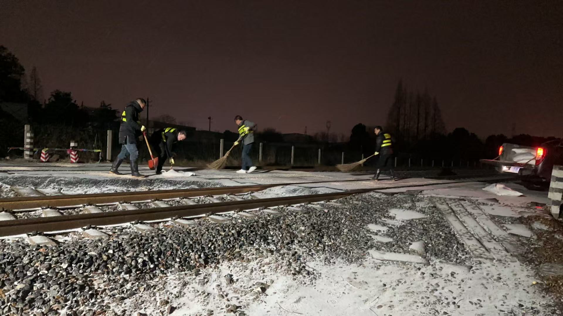 区综合执法中心组建应急专班进行道路巡查,同时组织工作人员及环卫工人,在干道桥梁播撒融雪盐;出动除雪车辆对东方大道、上海大道、荆沙大道等主干道进行积雪清扫;安排人员对游园步道、公厕台阶铺设防滑草垫。