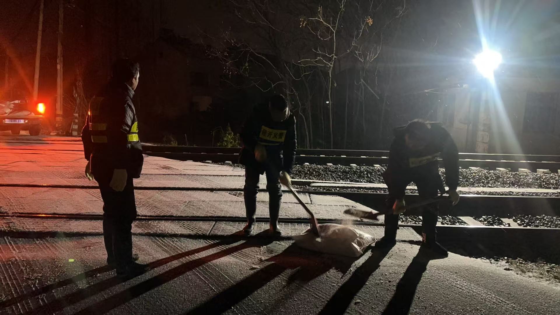 各乡镇(街道)第一时间集结力量,备足清雪工具,协调调配作业车辆,确保人员、物资及清雪设备全部到位。工作人员分片包干、合力攻坚,深入沿街路面、社区主干路等重点区域开展除冰扫雪作业。此外,工作人员还深入各小区,开展安全隐患排查,加固小区车棚,并以车灯照亮居民出行路,贴心守护群众夜间出行。