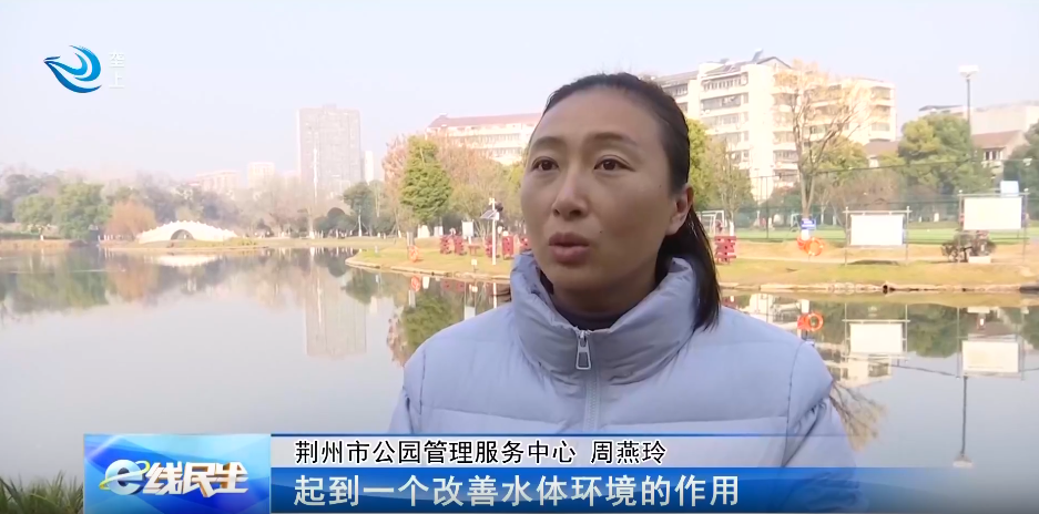 荆州市公园管理服务中心 周燕玲:每年气温升起来之后,水面的藻类和里面的一些水生物繁殖的特别快,我们之前也采取了很多方式,比如说撒药品,或者是养鱼效果都不是特别好,因为只能短时间有用,治标不治本。