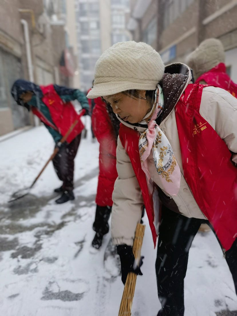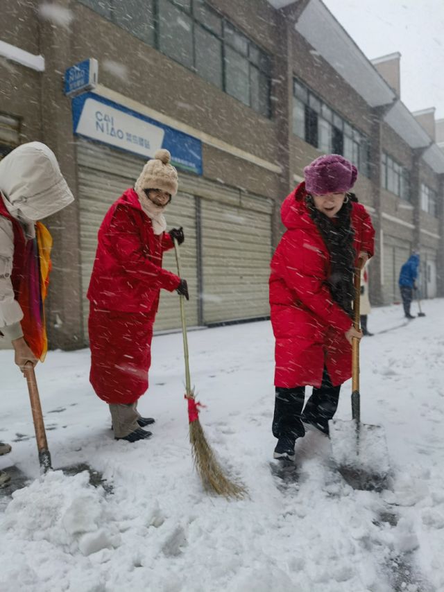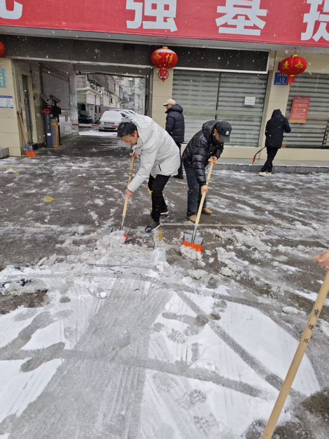 “党员带头上,群众跟着干!”清晨的寒风中,市委办、区资规局下沉党员们手持铁锹、扫帚率先集结,在社区干部的带领下直奔积雪最严重的路段,得知党员干部们在铲雪,辖区居民纷纷响应,退休老党员钟伯扛着自家扫帚赶来,“我身子骨还硬朗,能搭把手!”;年轻居民小李带着铁锹匆匆加入,“昨晚看群里通知,今早特意早点出门帮忙”。