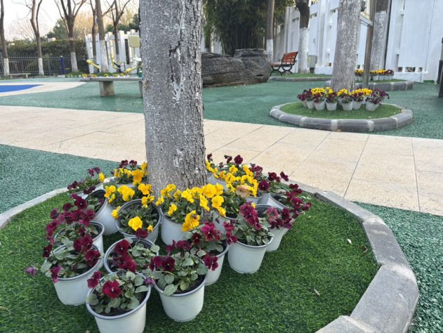 繁花行动添亮色,为社区休闲驿站提质增色。社区同步推进繁花行动,在驿站周边与广场边角栽种花卉绿植、打造微景观,让生态绿意与便民空间相融,使升级后的场地既有实用功能,更具生态温度,持续提升居民宜居幸福感。