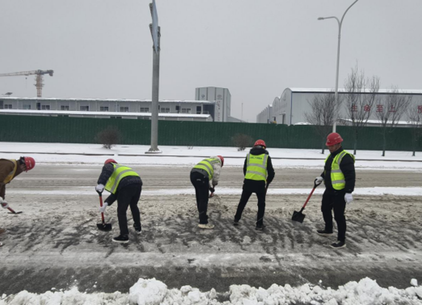 经过连续数小时的奋战,项目驻地及周边主要道路的积雪积冰被全面清除,道路恢复安全畅通。此次行动不仅保障了施工车辆和周边居民的出行安全,更展现了青年员工“迎难而上、冲锋在前”的拼搏精神,践行了“建设为人民”的初心。
