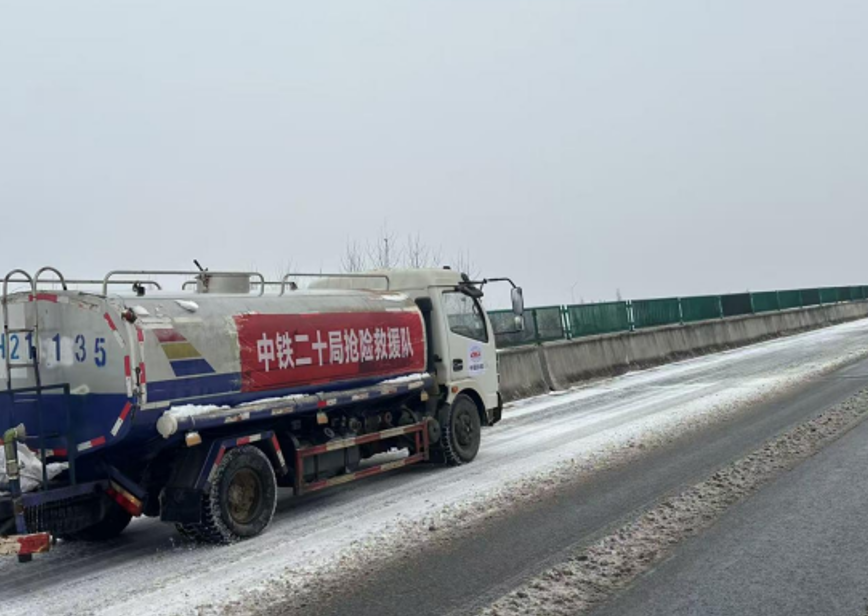 江汉风报道:近日,荆州突遭大范围雨雪侵袭,气温急剧下降,由湖北交投建设集团投资、中铁二十局承建的二广高速荆州绕城段JZTJ - 2标项目沿线瞬间被冰雪覆盖,道路成了“溜冰场”,给项目推进和周边群众出行带来不便。