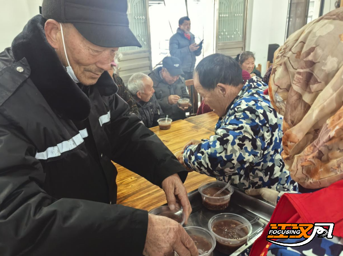 粥煮好后,志愿者们将热气腾腾的腊八粥优先递到老人手中。大家围坐品尝,聊着议事内容,脸上满是幸福。志愿者们还把粥送到独居老人家中,让他们感受节日温暖。