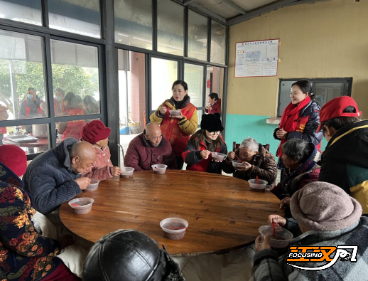 现场,保温桶里的腊八粥热气腾腾,糯米、红枣、莲子等食材交融出软糯香甜的滋味。志愿者们分工协作,有的麻利盛粥、有的稳稳端递,还有人细心搀扶行动迟缓的老人入座。对卧床不起或不便起身的老人,志愿者俯身半蹲,一勺勺慢慢送进老人口中,脸上洋溢着幸福的笑容。